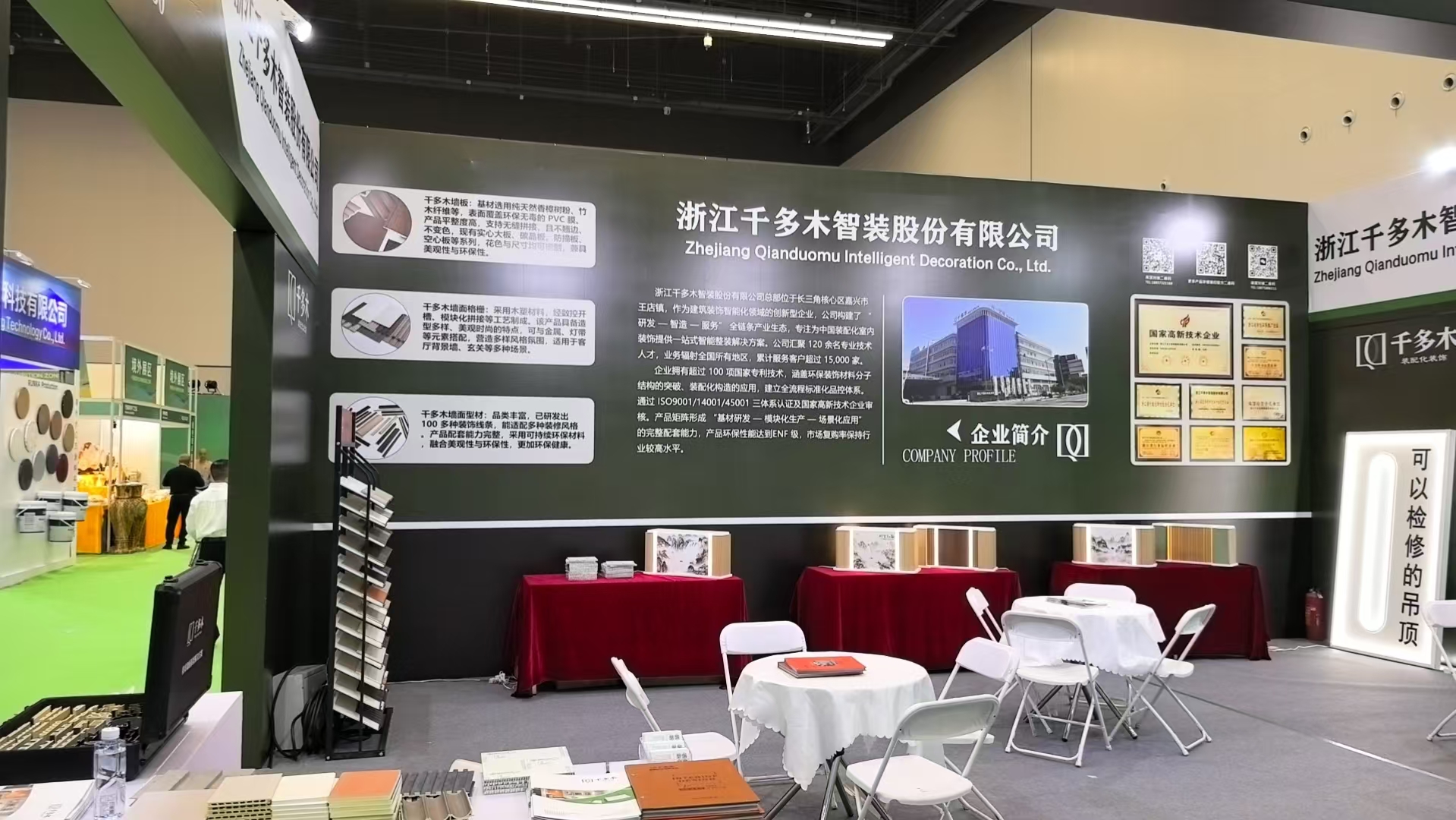 Zhejiang QianDuoMu Intelligent Decoration Co., Ltd. nam van 29 tot 31 oktober 2025 deel aan de Huzhou International Green Smart Home Expo. De tentoonstelling bevatte meubels, op maat gemaakte huisoplossingen, geïntegreerde plafonds, slimme huissystemen, stoffering, deuren en ramen, materialen voor het hele huis en intelligente apparaten. Dit evenement breidde niet alleen ons portfolio van internationale klanten uit, maar versterkte ook onze merkaanwezigheid in de regio Jiangsu-Zhejiang-Shanghai.