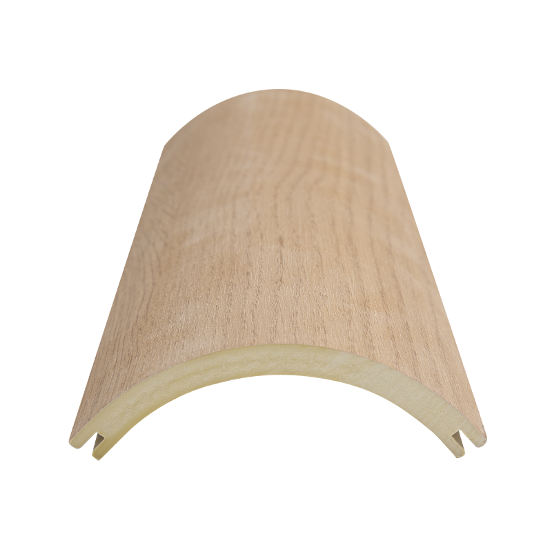 De afgeronde buitenhoeklijst van 75 mm is gemaakt van een hout-kunststof composietmateriaal van houtpoeder, calciumpoeder en polymeer. Het is vervaardigd via een gestandaardiseerd gietproces en heeft een 75 mm breed profiel met een volledige, afgeronde boogvorm. Het is speciaal ontworpen voor buitenhoeken op muren, heeft een "brede bescherming, zachte esthetiek" en is geschikt voor ruimtes die een grotere buitenhoekbescherming en een naadloze verbinding vereisen. Het is een decoratief onderdeel dat functionaliteit combineert met esthetische aantrekkingskracht.